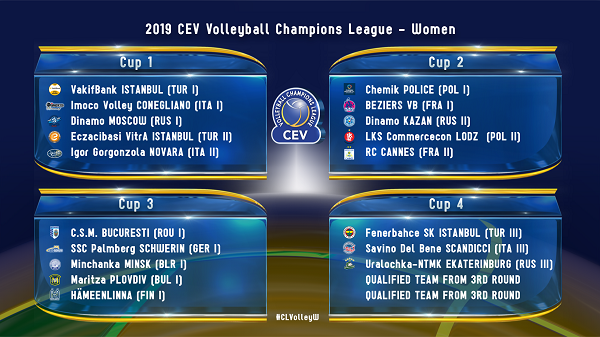 4.Kavanoz: Fenerbahçe (Türkiye), Savino Del Bene Scandicci (İtalya), Uralochka-NTMK Ekaterinburg (Rusya), 3.Tur Ön Elemesi'nden Gelecek Takım, 3.Tur Ön Elemesi'nden Gelecek Takım