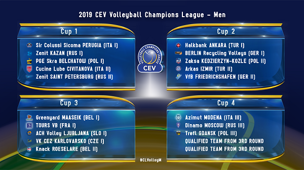 Ülkemizi 2019 CEV Şampiyonlar Ligi’nde temsil edecek takımlarımız bayanlarda; Eczacıbaşı VitrA, Fenerbahçe ve VakıfBank, erkeklerde; Arkas Spor ve Halkbank'ın gruplardaki rakipleri, yarın (02 Kasım 2018, Cuma) belli olacak.