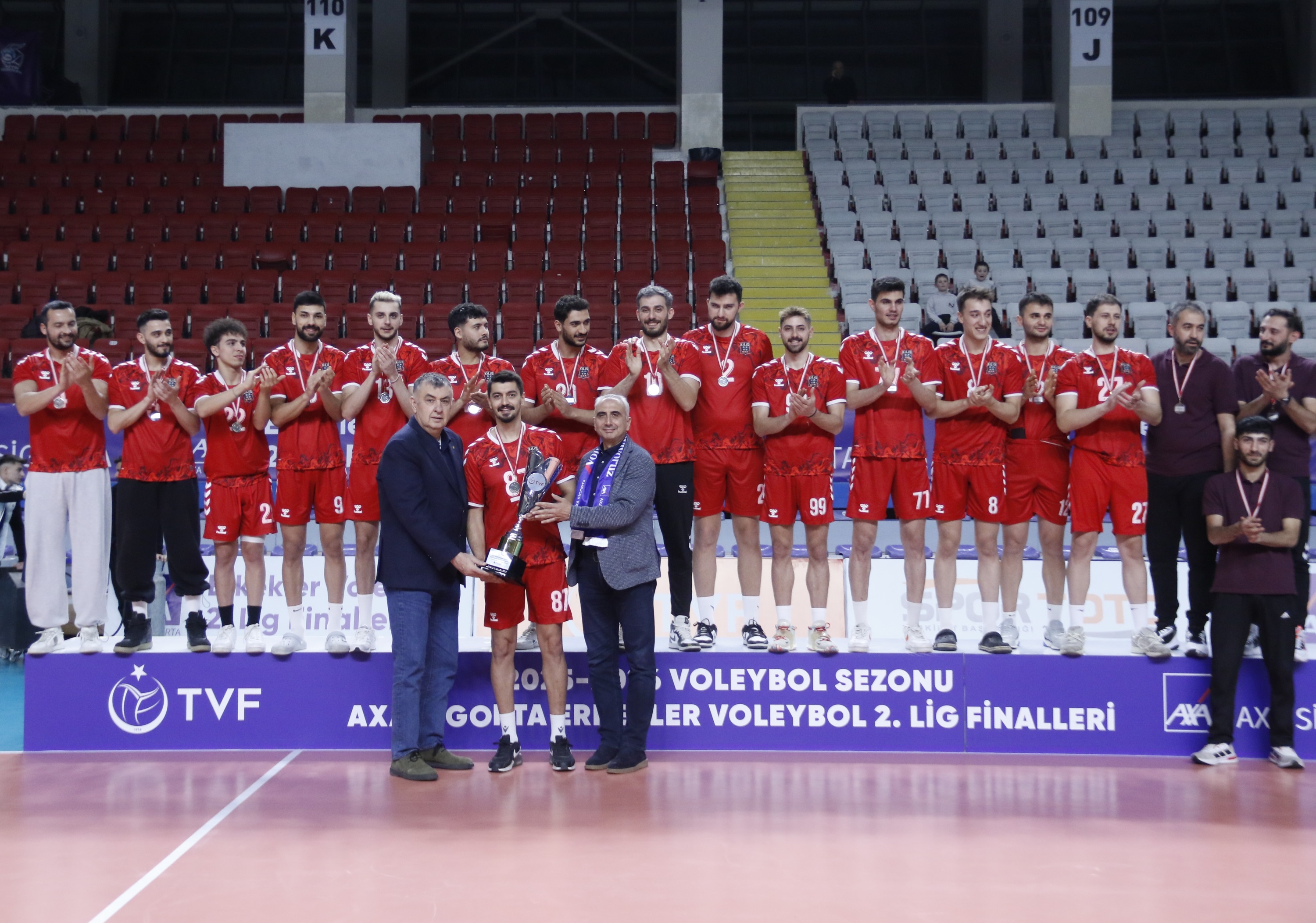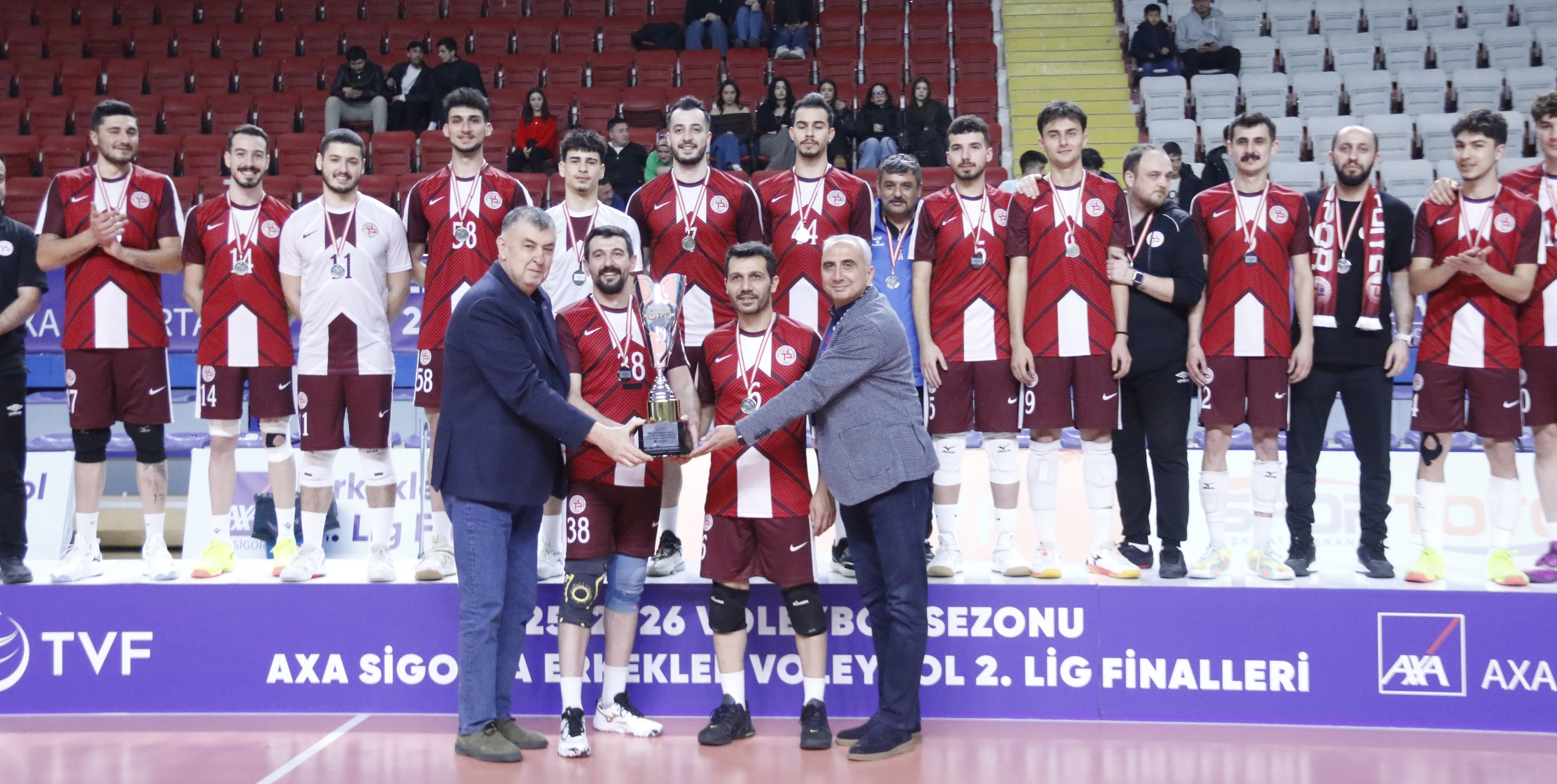 A Grubu ikincisi Tokat Bld. takımına madalyalarını Afyon Gençlik ve Spor Şube Müdürü Yılmaz Erşen, kupasını TVF Yönetim Kurulu Üyesi Ersin Yılmaz ve AXA Sigorta Akdeniz Bölge Koordinatörü Murat Can takdim etti.