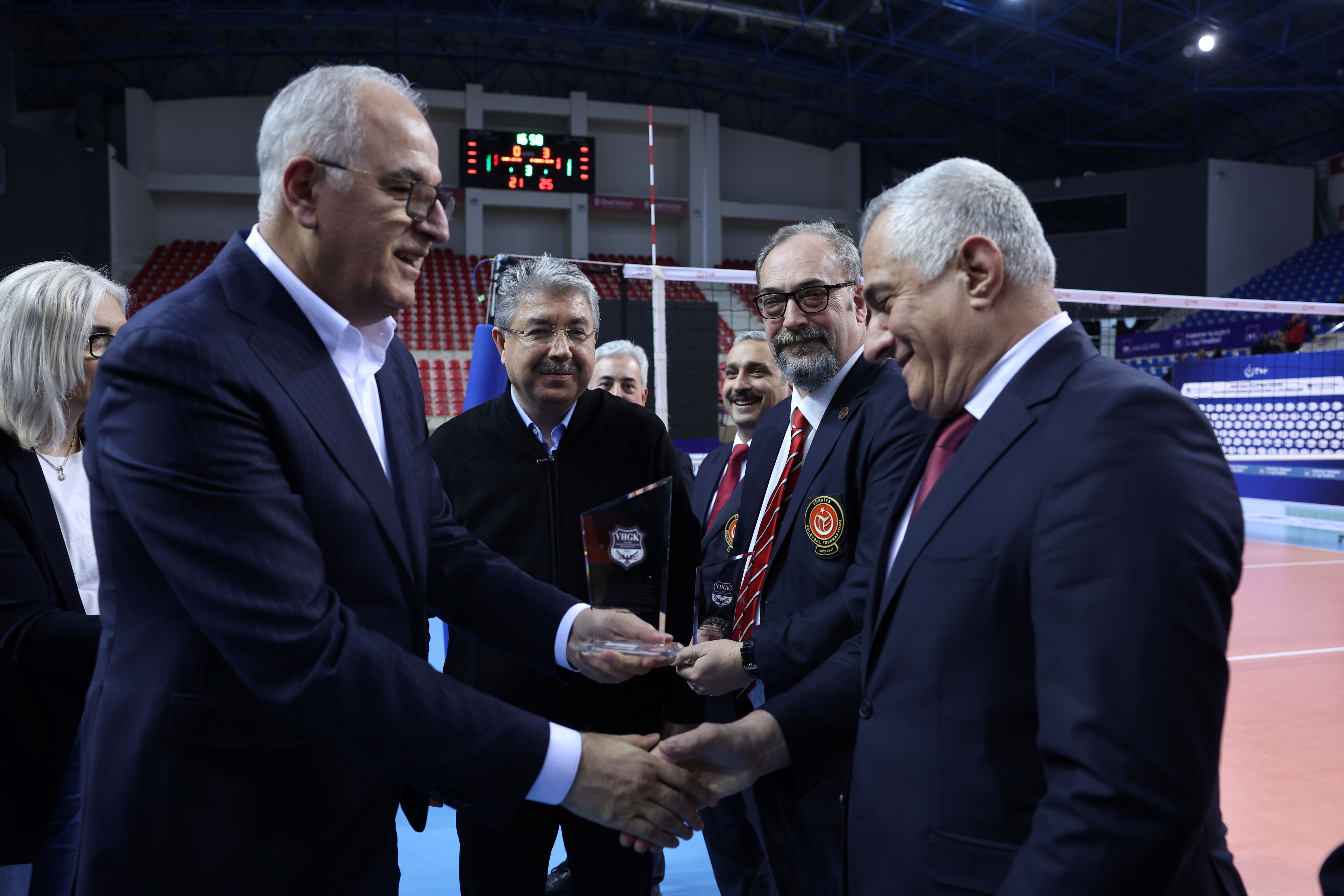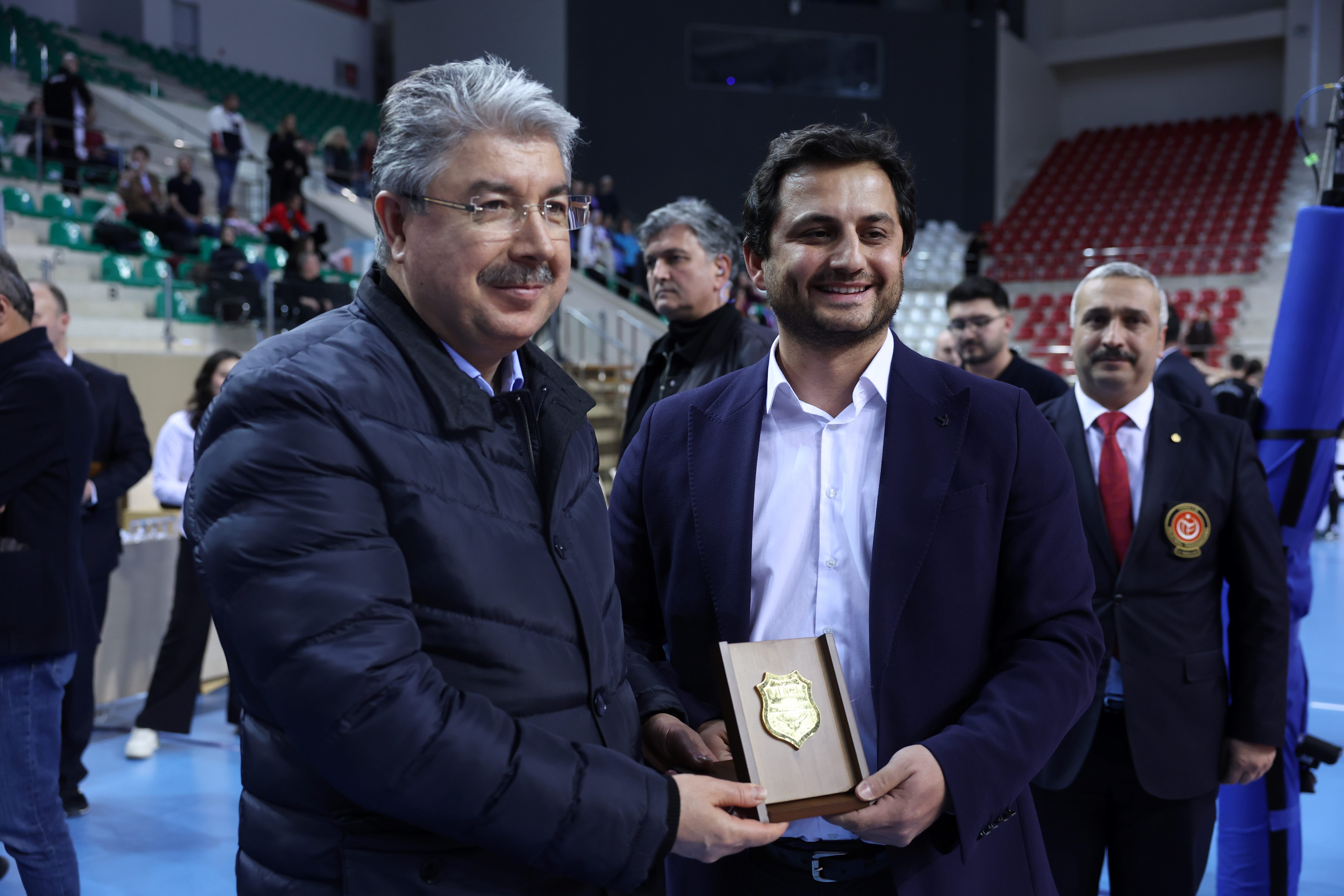 Kupa töreni öncesinde Voleybol Hakem ve Gözlemciler Konfederasyonu Başkanı Çağrı Yağış, Eskişehir Valisi Erdinç Yılmaz'a plaket takdim etti.