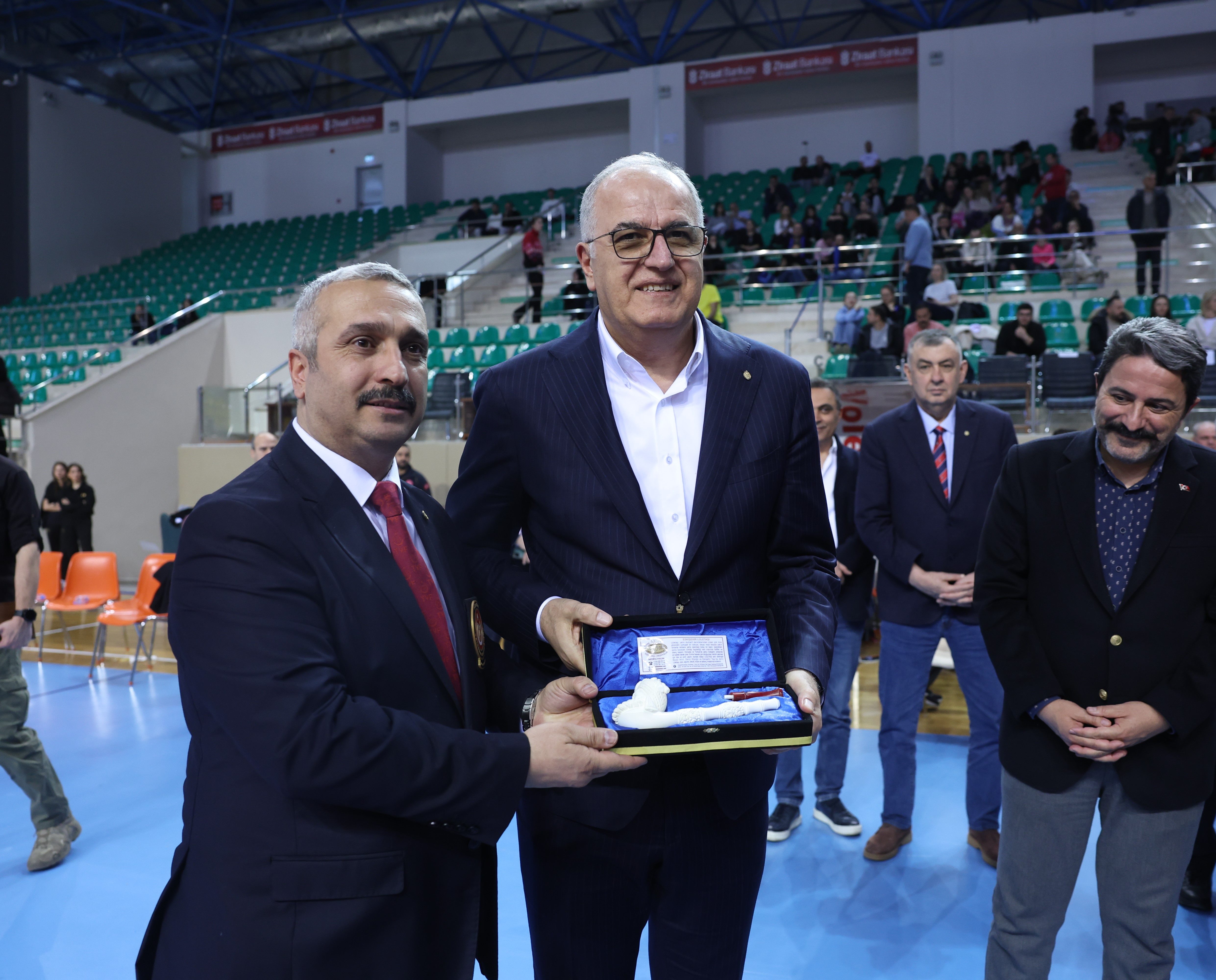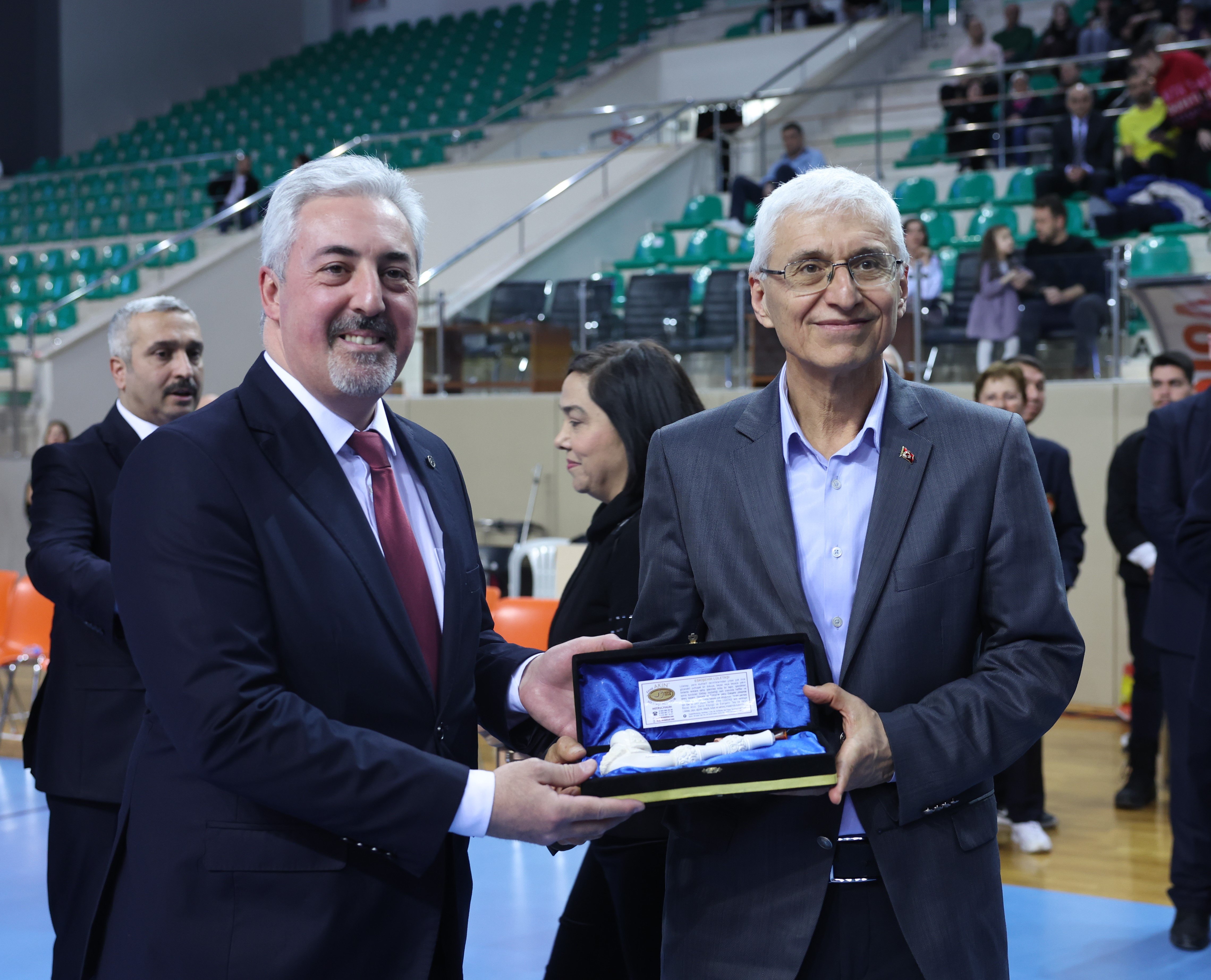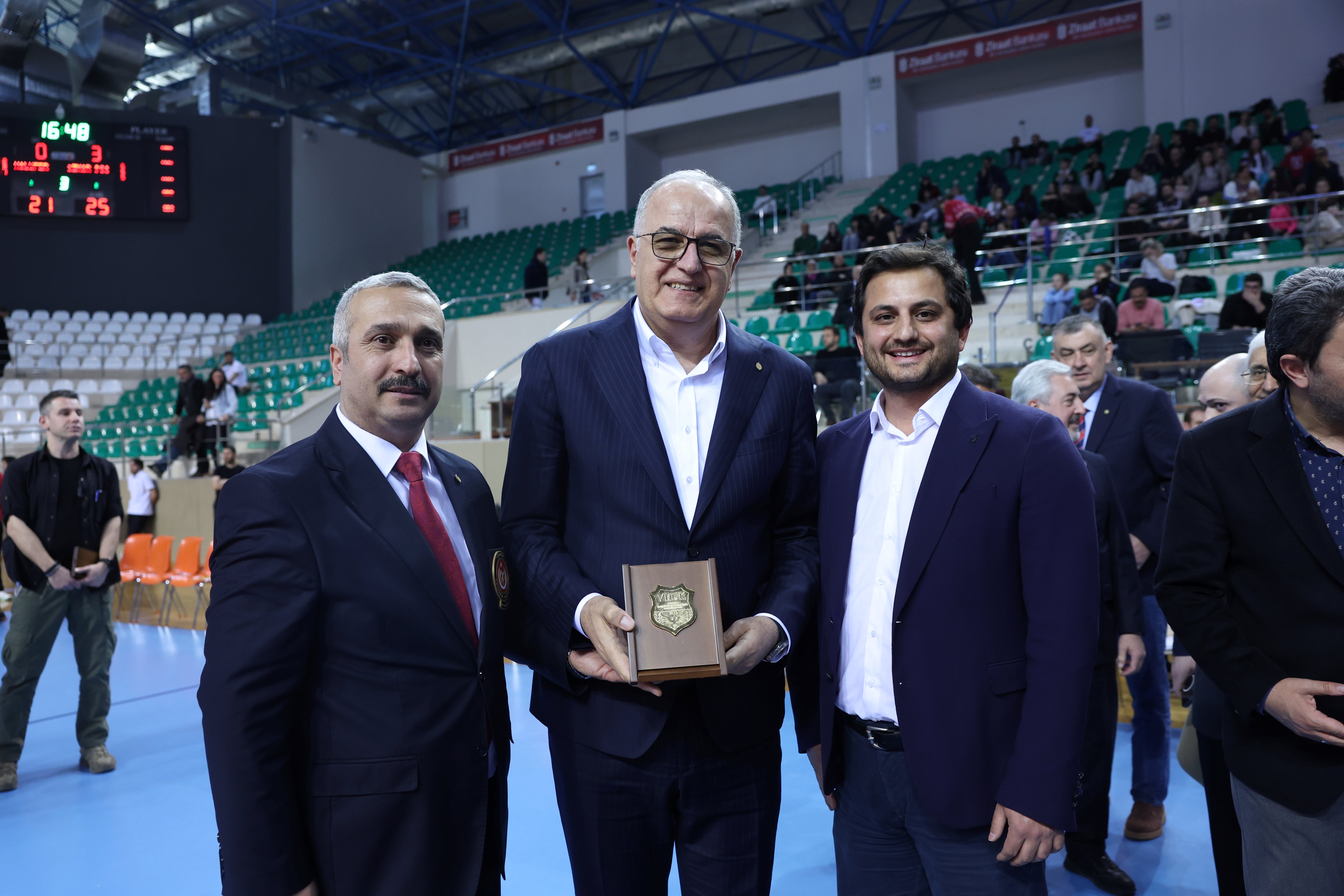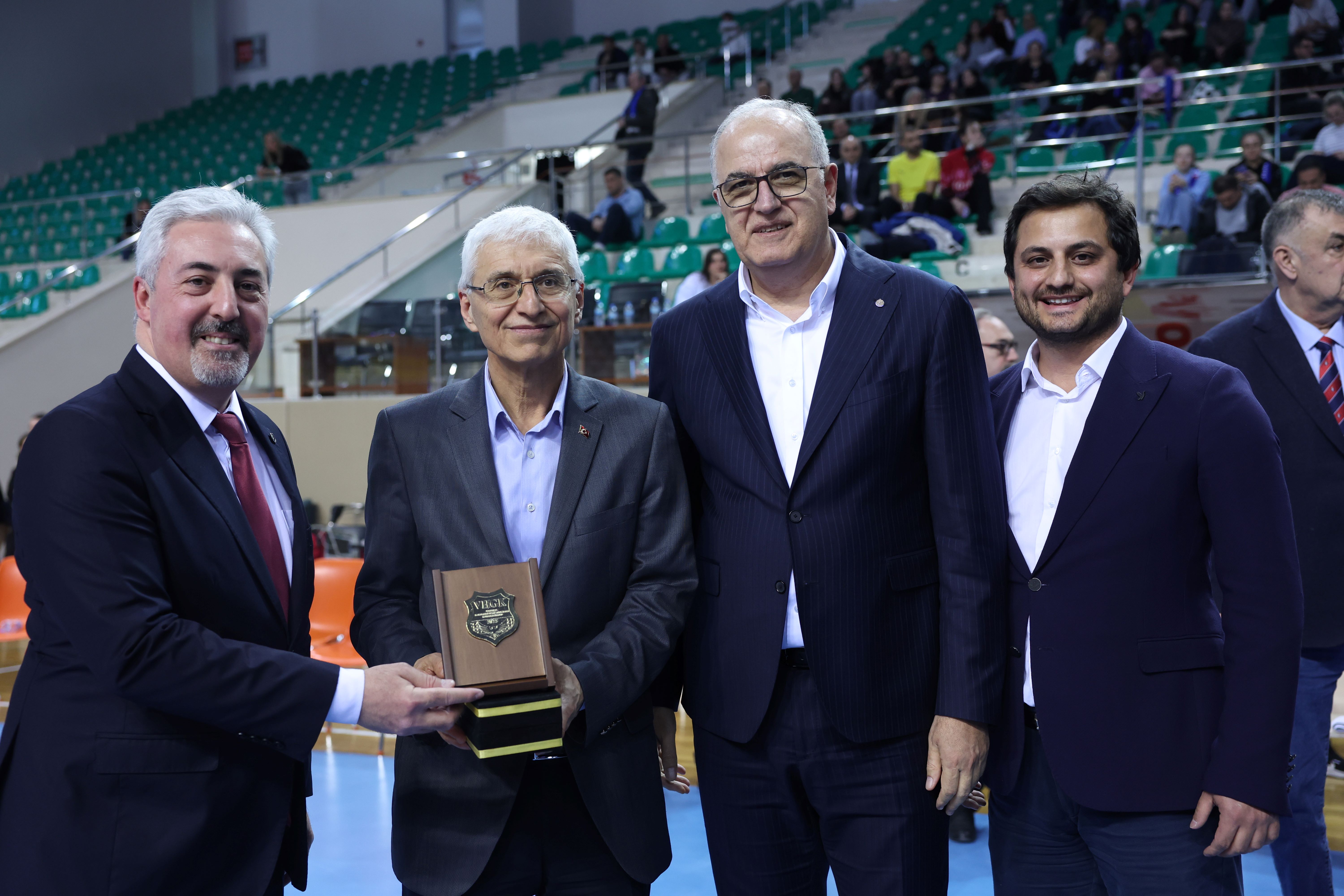 Merkez Hakem Gözlemciler Kurulu Başkanı Onur Hoşnut, Eskişehir Teknik Üniversitesi Rektörü Prof. Dr. Adnan Özcan'a plaket takdim etti.