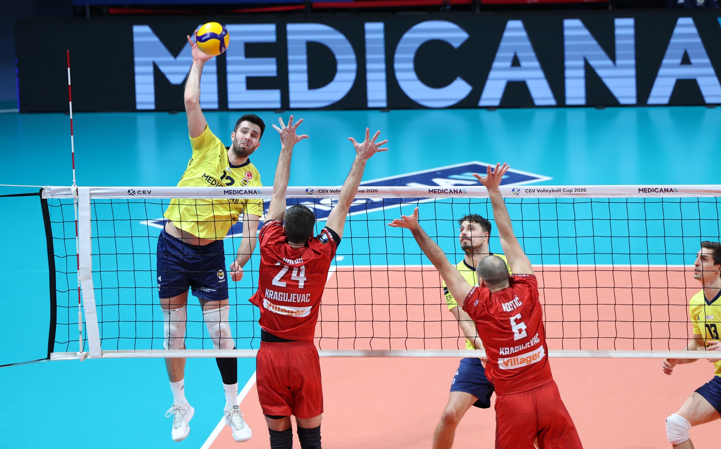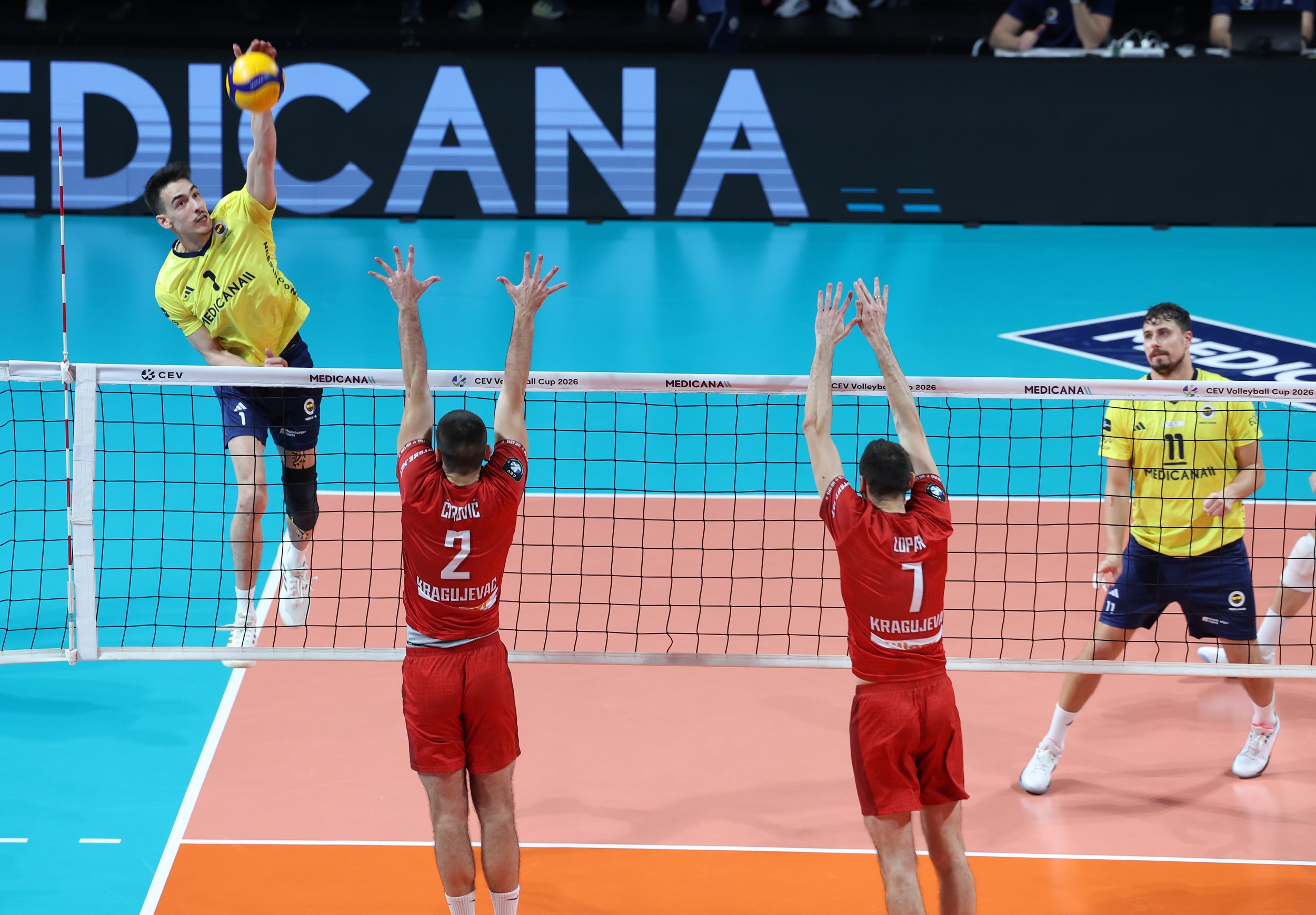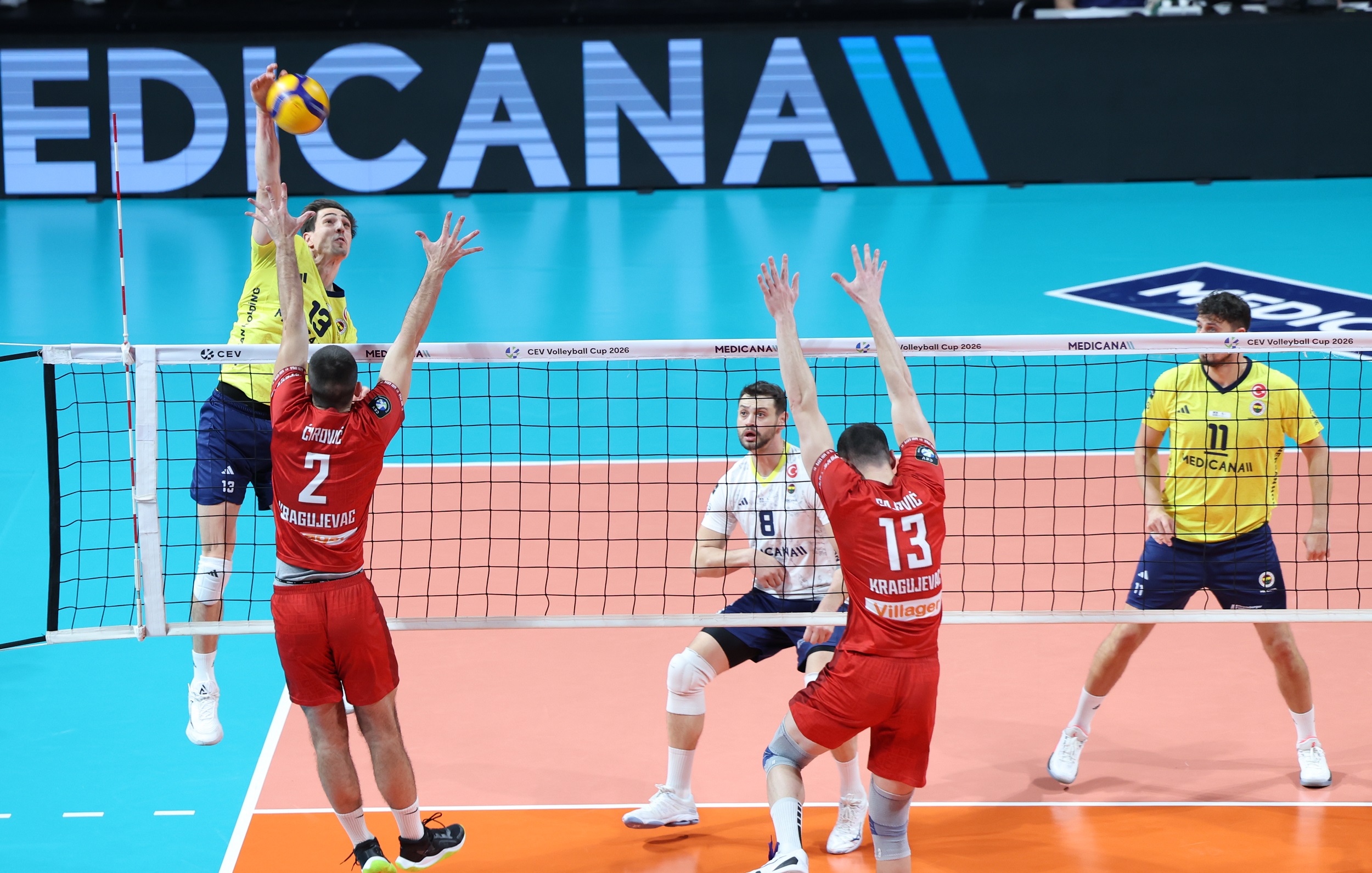 Fenerbahçe Medicana, 2026 CEV Kupası 16'lı Finaller Turu ikinci maçında sahasında Sırbistan ekibi Radnicki Kragujevac'ı 3-0 (25-14, 25-15, 25-13) mağlup ederek 8'li Finaller Turu'na yükseldi.