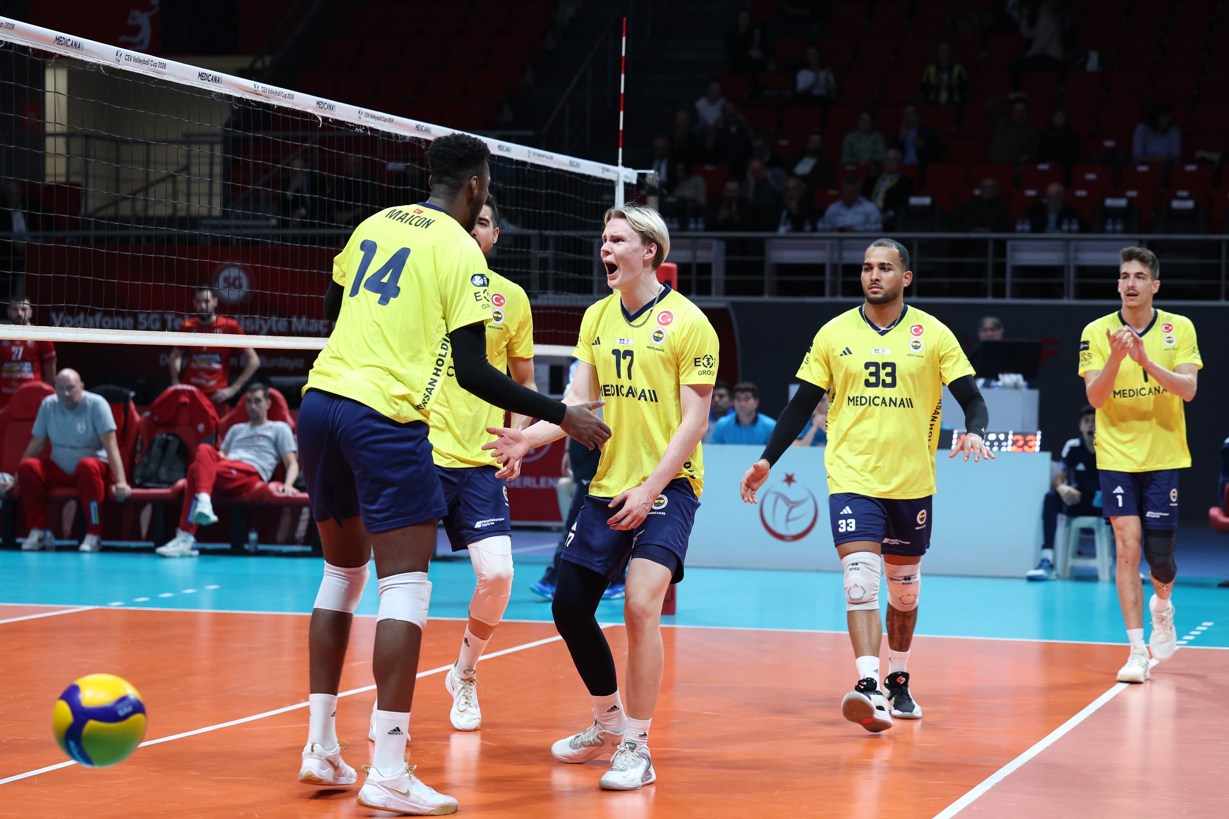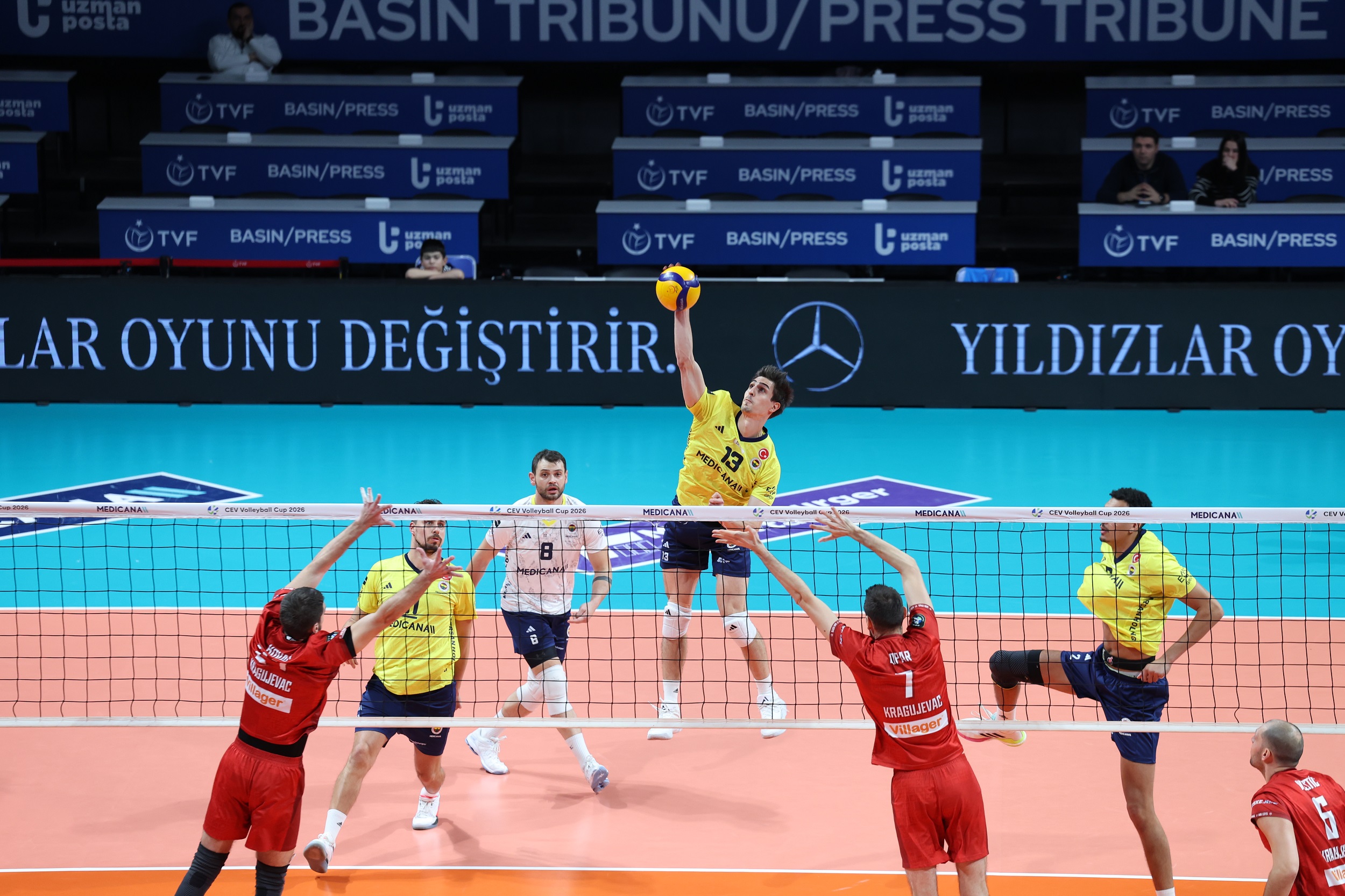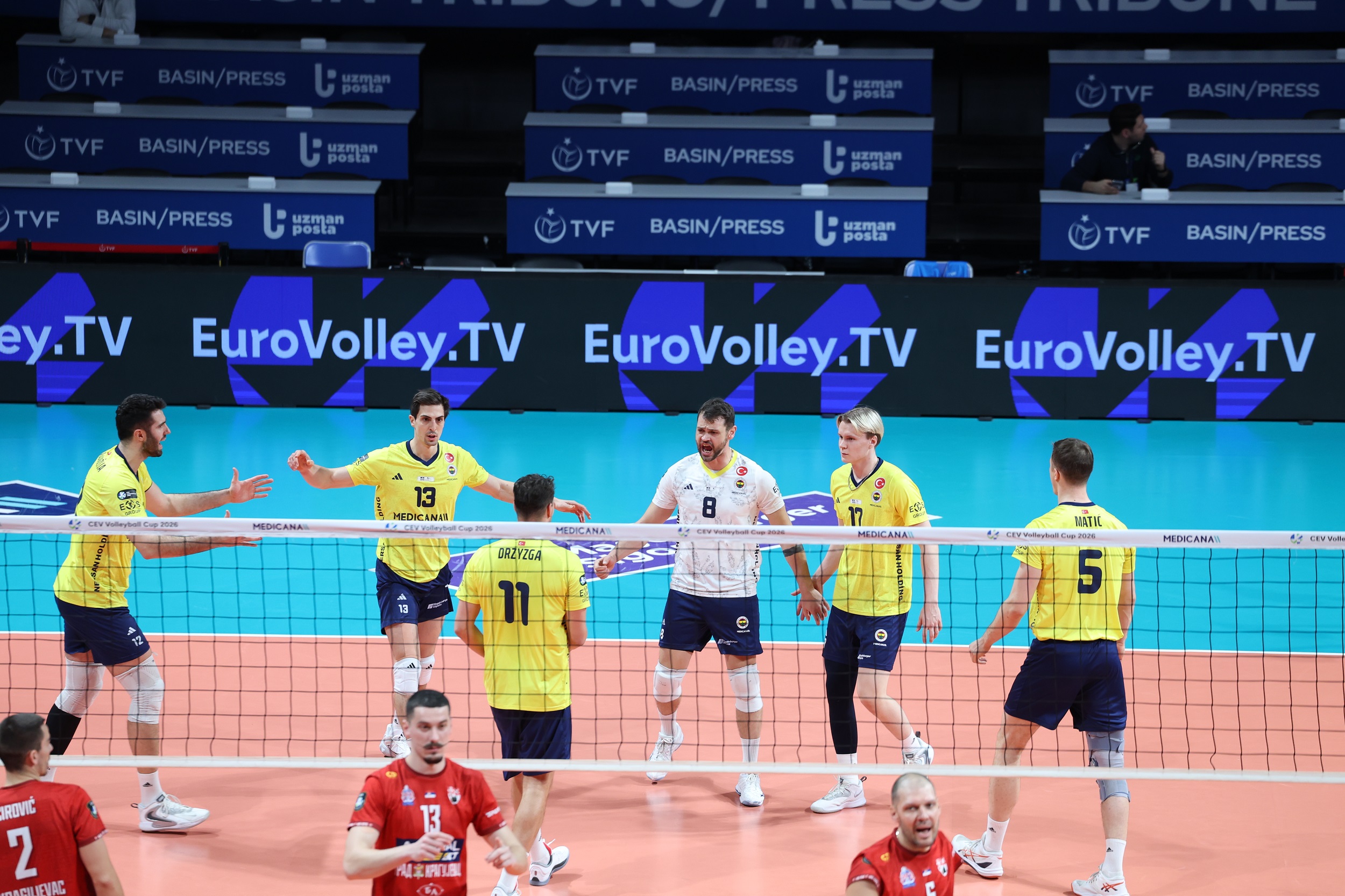 Fenerbahçe Medicana, 2026 CEV Kupası 16'lı Finaller Turu ikinci maçında sahasında Sırbistan ekibi Radnicki Kragujevac'ı 3-0 (25-14, 25-15, 25-13) mağlup ederek 8'li Finaller Turu'na yükseldi.