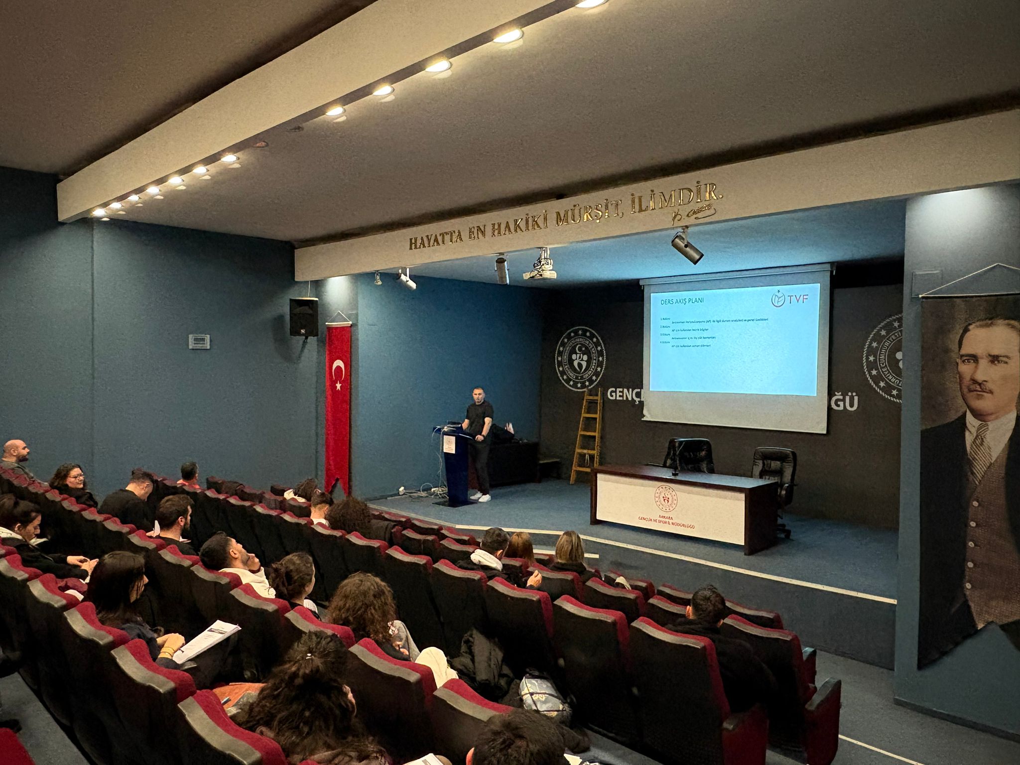 Ankara Gençlik ve Spor İl Müdürlüğü Konferans Salonu'nda; TVF Eğitim Kurulu Koordinatörü Ahmet Karakurt, TVF Eğitim Kurulu Üyesi Prof. Dr. Gülbin Rudarlı, TVF Eğitim Kurulu Üyesi Doç. Dr. Esin Ergin, TVF Eğitim Kurulu Üyesi Dr. Gencer Yarkın, TVF Eğitim Kurulu Üyesi Cihan Çintay, Özün Gömengil, Özkan Gönülaçar ve Yasin Gökgöz tarafından verilen derslere 50 kursiyer katılım gösterdi.